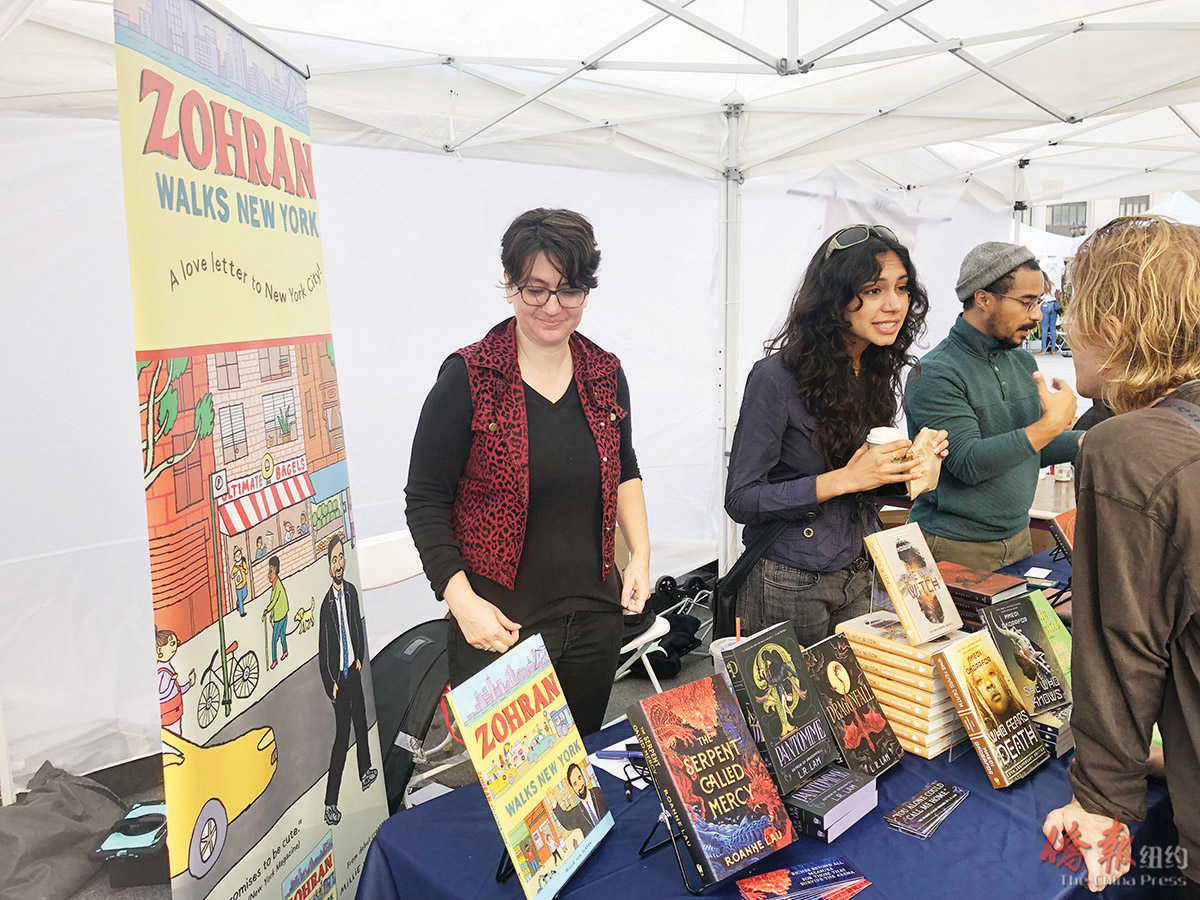 正值纽约市长竞选冲刺阶段,一本力挺民主党参选人佐兰·曼达尼(Zohran Mamdani)的儿童绘本《佐兰走遍纽约》(Zohran Walks New York)也在展会上颇为吸睛。这一面向4到8岁儿童的绘本用可爱卡通描绘了曼达尼走遍纽约五个行政区的情景,其灵感来源于他在市长竞选期间著名的十三英里徒步活动,“赞颂那些让城市伟大的人民与地方”。
