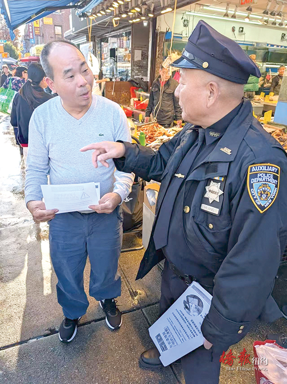 上周六(8日),72分局出动生活质量组、预防犯罪组以及多位辅警,与陈学理办公室组成联合行动小组,在八大道进行宣传执法。行动共分发宣传传单500余份,范围覆盖八大道45街至60街,以黄启旺为代表的辅警们用中英文向民众说明风险与投诉方式。经此一役,非法冷冻虾摊贩已从八大道沿线销声匿迹。