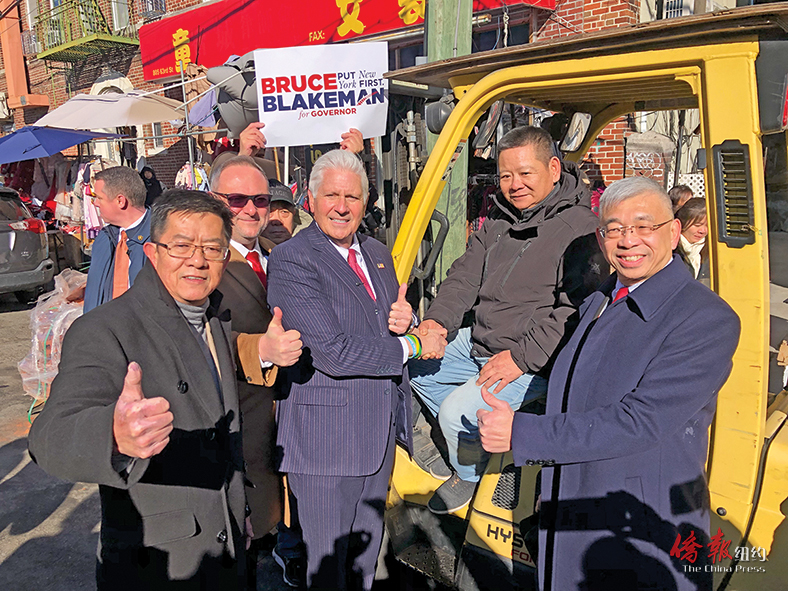 15日(周四)上午11时,布莱克曼一行在布碌仑九大道63街举行记者会,随后拜访了美国广东侨胞联合总会、华兴多元文化中心,以及附近数家华人店铺。