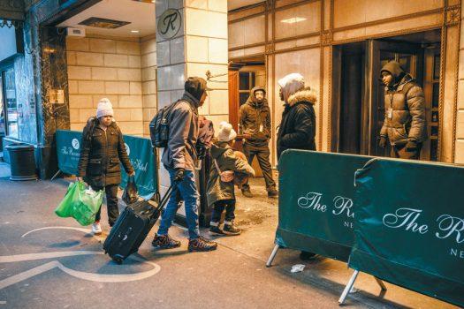 紐約市曾經引以為傲的羅斯福酒店(Roosevelt Hotel)變成移民收容所已經一年。公立醫院系統高級官員朗格(Ted Long)曾經說過,該酒店是「新愛麗絲島」,移民可以在那裡享用熱食、協助辦理庇護文件、提供醫療照護和健康檢查。