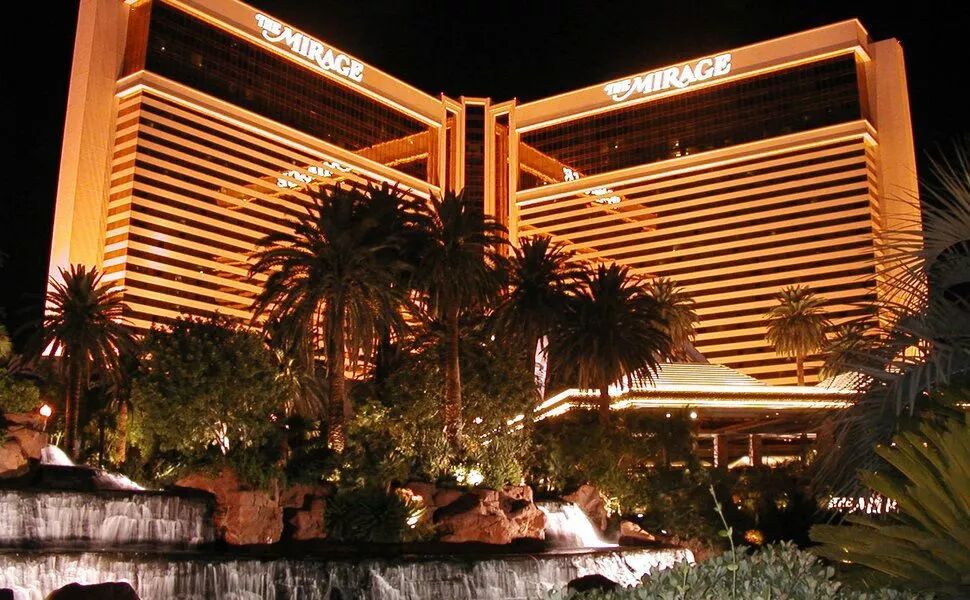 所以说在Vegas什么景象都可以看到,Mirage夜晚的火山喷发更是不能错过的啦~~ 用水火声光布置的仿真熔岩,每晚在酒店门口定时喷发。