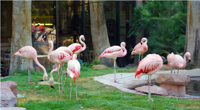 最显眼的便是火烈鸟了,毕竟是酒店招牌~ 虽然不算是真正意义上的动物园,毕竟不要钱,去和火烈鸟们合个影什么的还是很有乐趣哒。