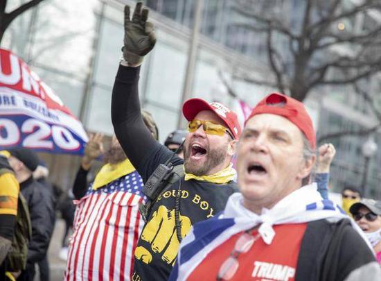 《华盛顿邮报》称,“骄傲男孩”在大街小巷穿梭,却发现警察不停挡住他们去路,因此他们变得越来越愤怒。其中一名成员向警察吼道:“恭喜!现在两党都恨你们了!”