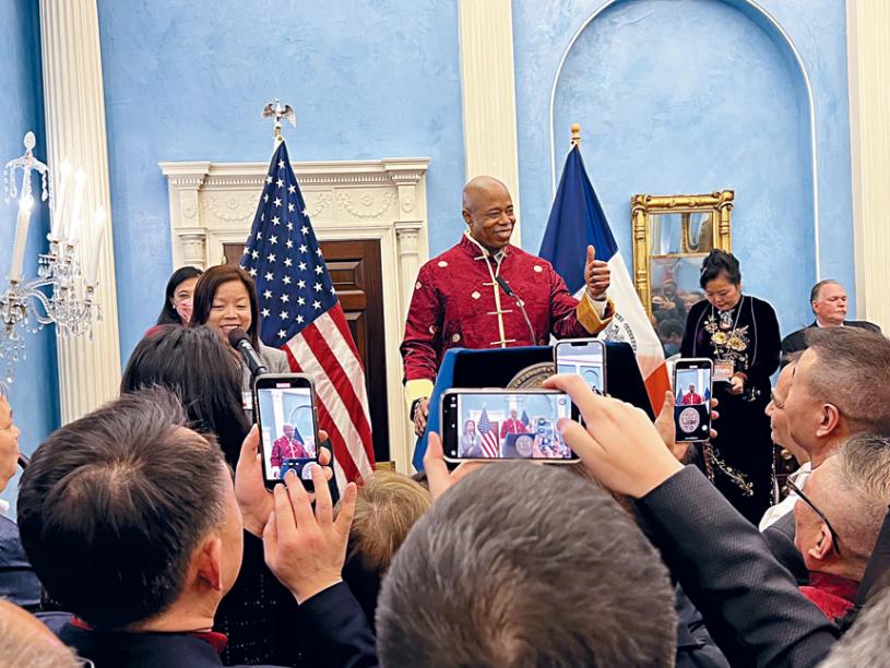 紐約市長亞當斯昨(8日)於曼哈頓上東區的市長官邸舉辦農曆新年慶祝活動,這是紐約市歷史上市長首次在市長官邸舉辦農曆新年活動,也是亞當斯上任以來在市長官邸舉辦的首個社區公眾活動。