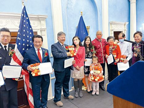 此外,亞當斯還在現場為多位華人頒發嘉獎狀,包括因公殉職的華警劉文健的父母劉偉棠、利秀燕和劉文健的遺孀陳佩霞、消防急救員華裔巡官劉特倫(Terence Lau)、UA3主席孔振成(Donald Hong)、美國紐約華人總商會會長徐家鵬、瑪摩利醫院亞裔部總監楊靜妍。
