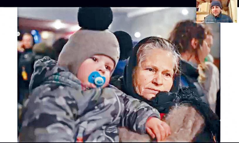 在3月11日舉行的這場研討會上,正在烏克蘭和波蘭邊境進行報導的戰地記者奧提茲(Manuel Ortiz)從前線通過zoom帶來最新消息,他說戰爭一開始想離開家鄉的人不多,因為他們不相信他們所在的城市會被襲擊,但現在即使之前覺得安全的地方也開始被攻擊,人們也在逃離。他所在的烏克蘭波蘭邊境城市Lviv,一些烏克蘭做火車30多個小時,來到這裡等待進入波蘭。他說人們排成長龍,要等很久才能過境,其中很多是婦女老人殘疾人拉著很重的行李。但過境之後通常受到禮遇,很多波蘭志願者向邊境送來熱的食物。他說邊境並沒有大規模建起難民營,因為很多人通過air b&b捐贈房間給難民入住。但在擁擠的難民人群中,幾乎沒有人戴口罩,「人們已經不在乎疫情了。」奧提茲說。