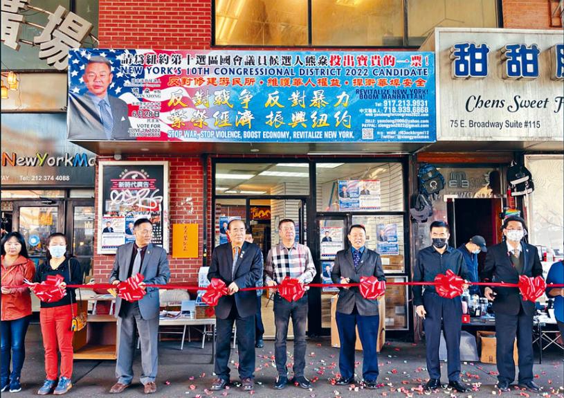 紐約第十選區國會眾議員參選人熊焱位於華埠的競選辦公室於19日正式開放並舉行剪綵活動,他在下東城的競選工作也由此正式拉開序幕(見圖)。