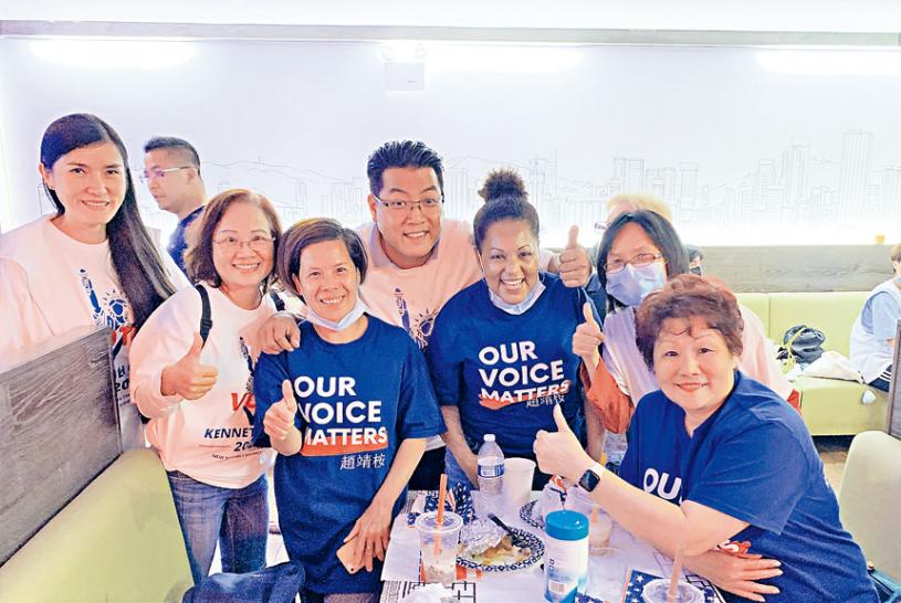 趙靖桉感謝競選團隊俟門俟戶向選民拜票,有人把球鞋都穿破了,為的是支持他為民服務的心。包括紐約溫州同鄉會會長吳洪光,總事傅林敏芝等為趙靖桉加嘉許他為華人參政之路寫下新篇章。
