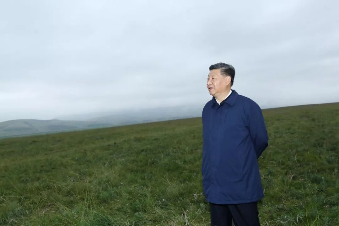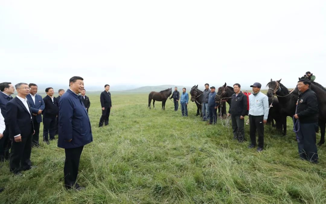 习近平在中农发山丹马场有限责任公司一场考察,实地了解祁连山生态环境恢复和保护情况。