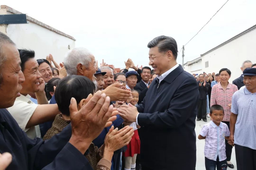 习近平在武威市古浪县黄花滩生态移民区富民新村同村民亲切交谈。
