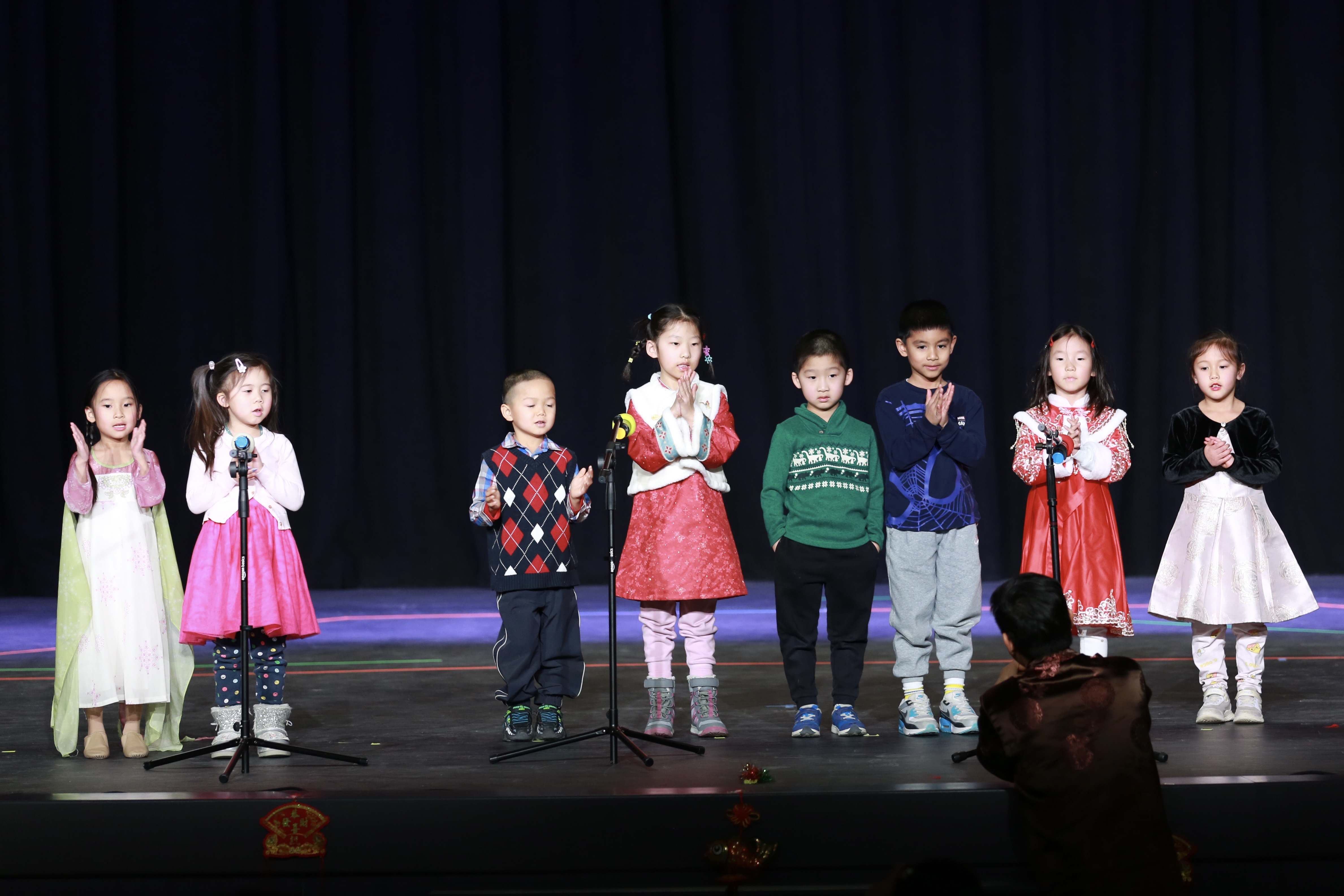 联欢会在热闹喜庆的舞狮中拉开序幕。各年级学生精心准备了形式多样、内容丰富的节目,包括朗诵、合唱、舞蹈、小品、武术表演等,充分展示了同学们一学期以来的学习成果与才艺风采。孩子们用稚嫩而自信的表演,表达了对新年的祝福,也展现了海外学子对中华文化的热爱。