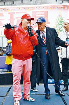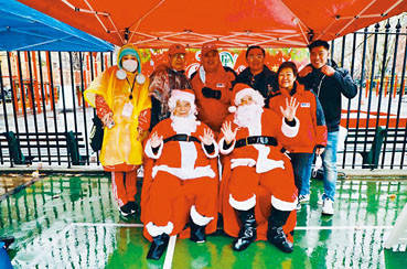 前重案組一級華探阮䁱民及梅氏公所元老梅犖生扮演聖誕老人與衆同樂。