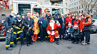 市消防局派出三輛消防車參與聖誕節送玩具孩童活動。