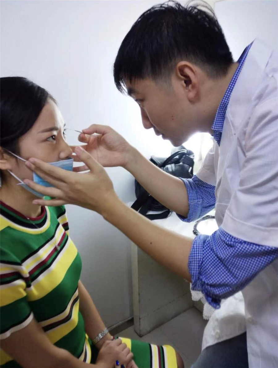 Undated photo shows Cheong Chong Keng (R), son of Cheong Tak Chio, designing a double eyelid minimally invasive surgery with a customer. He has decided to launch the fourth Deyutang clinic in New York that will be "a combo of both TCM (traditional Chinese medicine) and modern medical science." (Photo provided by Deyutang)