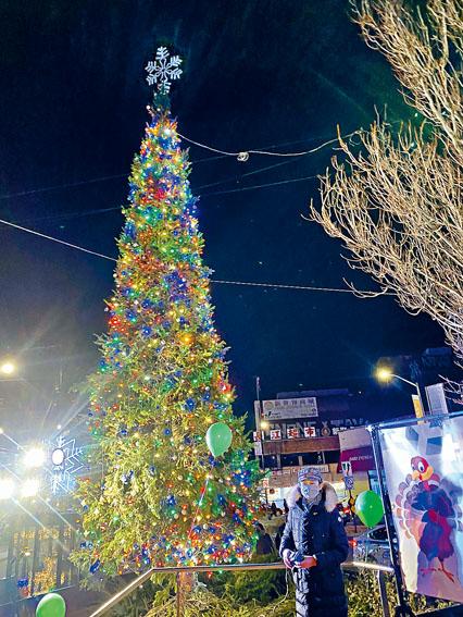 傅鶴鳴表示,今年的聖誕樹有30呎高,「疫情期社區尤其需要溫暖和光亮,希望聖誕樹吸引更多人來法拉盛,刺激當地的商業發展。」