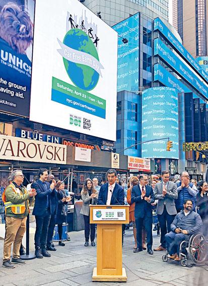 市交通局局長羅特格斯(Ydanis Rodriguez)於31日宣布,為慶祝地球日,4月23日當天紐約將推出史上規模最大的「無車日」活動,屆時全市五區百餘條街道將禁止機動車通行,並舉行包括音樂、舞蹈、藝術展等在內的盛大慶祝活動。