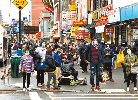 新冠肺炎變種病毒株疫情趨嚴重,法拉盛商業區戴口罩防疫的人近期明顯增加。
