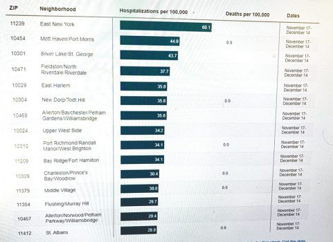 儘管COVID-19病例不斷增加,但皇后區的住院人數最近一直在下降。在12月18日達到31例住院治療的高峰後,這一數字已降至12月22日至25日期間只有1例。