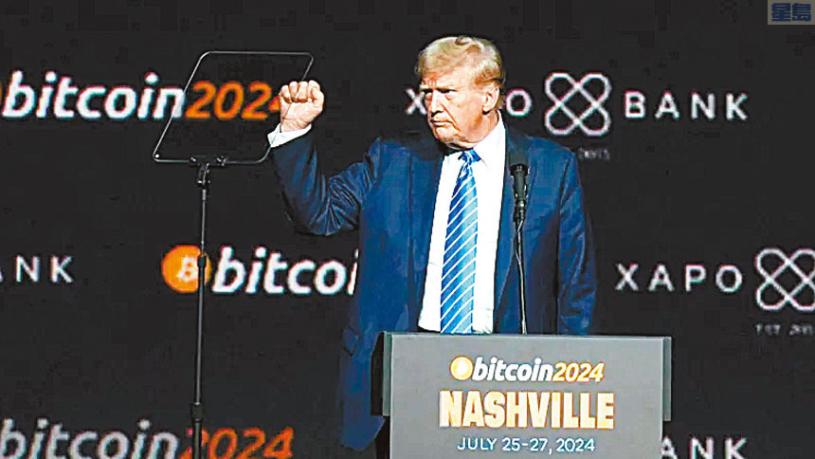 前總統特朗普出席比特幣2024年會議(Bitcoin 2024),矢言自己如果當選,會令美國成為這方面的「超級強國」,並讓聯邦政府保留比特幣「戰略儲備」,相反拜登政府奉行錯誤政策,才會加強監管加密貨幣。