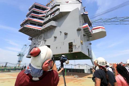 纽波特纽斯造船厂总裁珍妮弗·博伊金说:“将舰岛吊装到飞行甲板上是建造这艘准备在秋季下水航母的一个重要里程碑。按时抵达这一里程碑展示了我们正在应用在该舰建设中学到的重要经验,以及我们为提高效率使用新技术所取得的进步。”