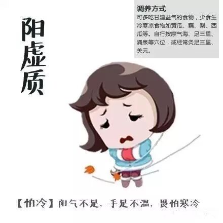 手足不温、喜热怕冷,喜欢吃热的东西。耐夏不耐冬,易感风、寒、湿邪,常腹痛腹泻,关节酸痛。