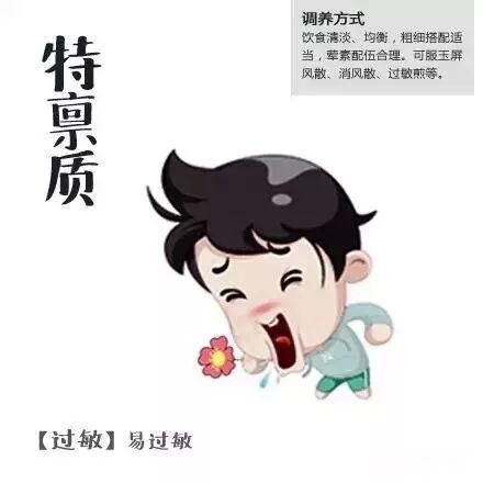 什么过敏性鼻炎啊,荨麻疹啊,一到某一季节就会过敏啊,这种多是特禀质。